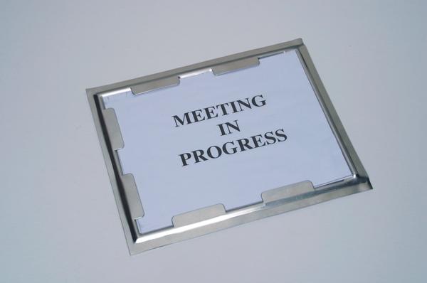 Aluminum sign is designed to easily hold letter size announcements.